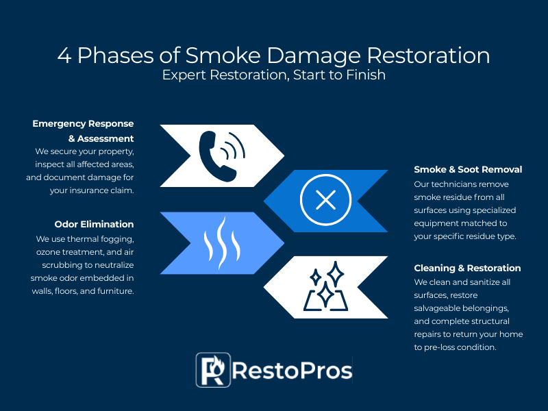RestoPros’ smoke damage restoration services follow a proven process developed from years of fire damage restoration experience.
