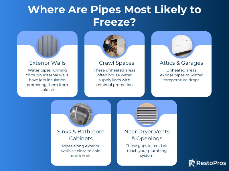 Not all pipes face equal risk during the winter months. Some areas of your home leave your water supply more exposed to cold-weather pipe damage.